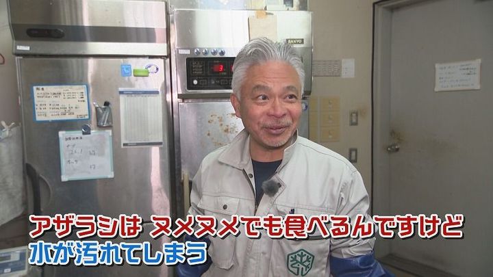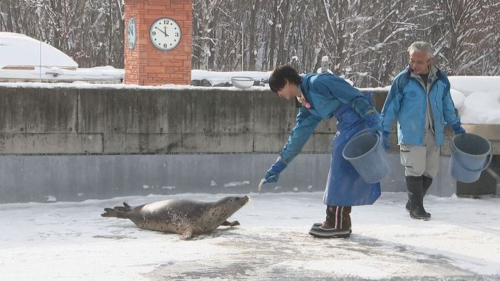 中田さん:「ヌメヌメしているのを取る。アザラシはヌメヌメでも食べるんですけど、あざらし館の水が汚れてしまうのでなるべく落とす」