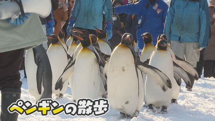 旭山動物園の冬の風物詩 “ペンギンの散歩” です。