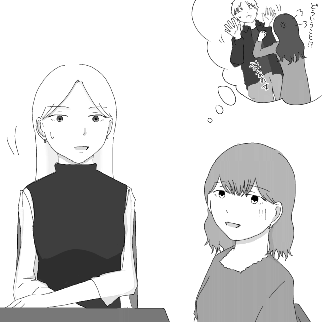 大学生のレンにフラれ玉砕した社会人のミカを慰めてくれたレンと仲の良い女の子カナコとモカ。意気投合した3人それぞれにレンから「会いたい」とメッセージが届いてドン引き。レンの友達アツシに「彼女にフラれた」と聞き、詳しく聞くために3人のいる場所に「ミカもいる」と伝えて来てもらい、事情をたずねたところ、レンの所に別の女の子が押しかけて「私が彼女だ!この女がいなくなれば!」と鬼気迫る表情で彼女のアンナさんにも詰め寄り、慌ててレンとアンナさんから引き離したという騒動があったのだそうです。