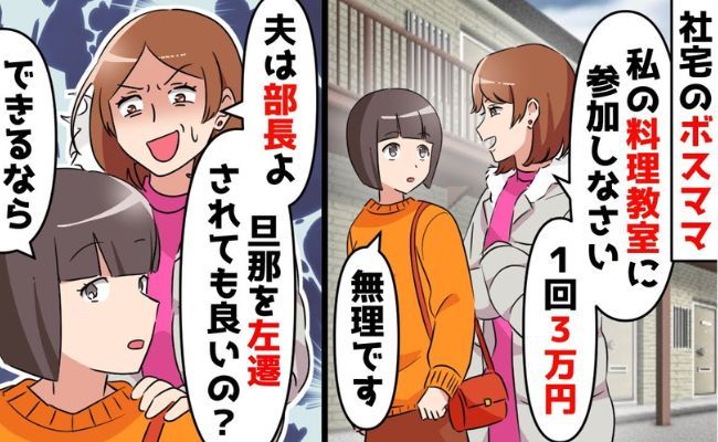 社宅のボス「参加しなさい」会費3万の料理教室を断った翌日、夫が左遷…私の正体がバレてボスが自滅!