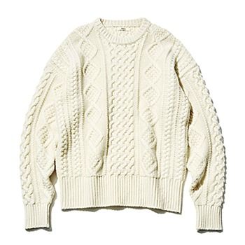 ケーブルニット/BODHI(alpha PR) 「すそが締まっているから、ずるっとしたパンツに合わせてもくびれをつくってくれる」(樋口さん)