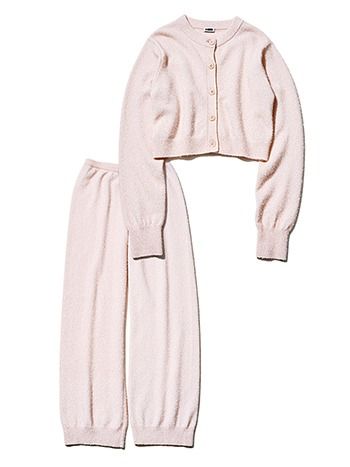 ピンクカーディガン、ニットパンツ/ともにエイチ ビューティー&ユース 「淡い上下は黒のロングコートを合わせて着たい」(樋口さん)