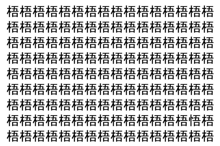 2. 【脳トレ】「梧」の中に紛れて1つ違う文字がある!?あなたは何秒で探し出せるかな??【違う文字を探せ!】