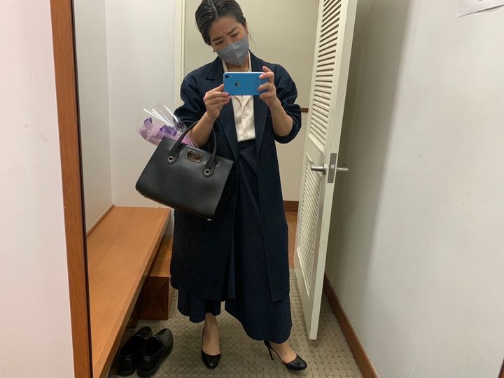大事な式ではネイビーとブラックをかけあわせてコーディネートするのが好き。GALERIE VIEのリバーシブルコートは表がネイビー、裏がブラックになっており、シーンに合わせて着こなしに変化がつけられます。長男と次男の卒業式には、中に着るアイテムを変えて同じコートを羽織りました。普段使いもできるので一枚持っているととても重宝します。