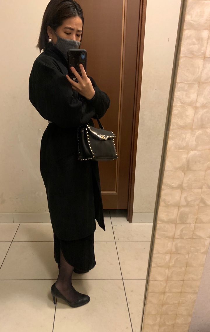 次男卒業式 coat/knot GERELIE VIE blause/COS skirt/ENFOLDO bag/JIMMY CHOO shoes/Gianvito Rossi