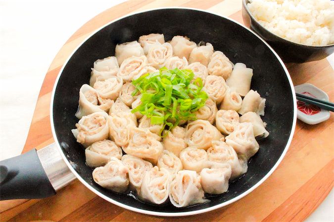 2. 【巻いて火にかけるだけ】こんなの見たことない!ワンパンで簡単「くるくる豚大根」作ろう!焼売風なの♡