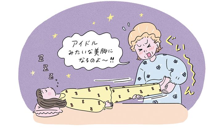 「11字脚という真っ直ぐな 長い脚が憧れの的なので、脚を引っ張って伸ばしている」