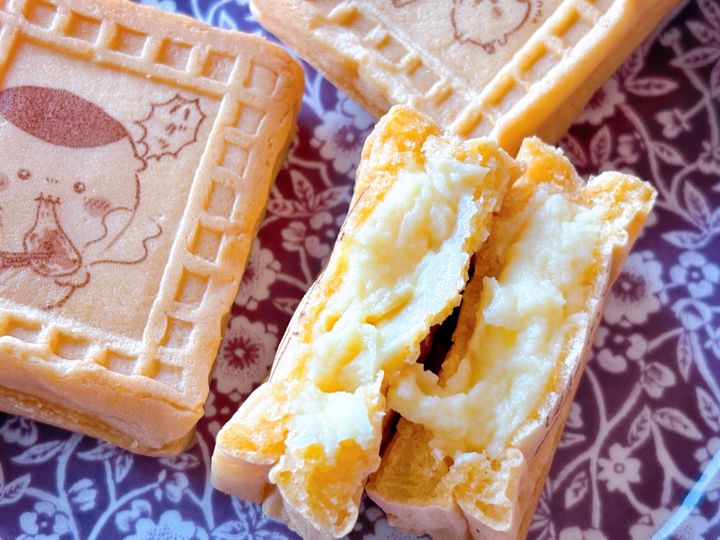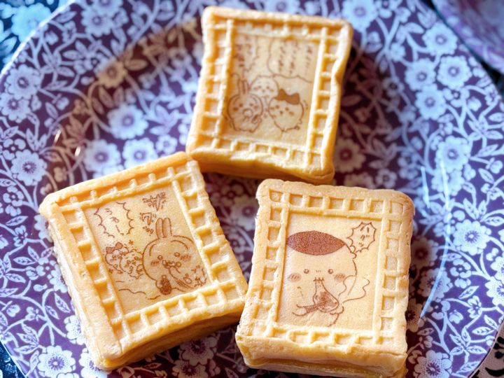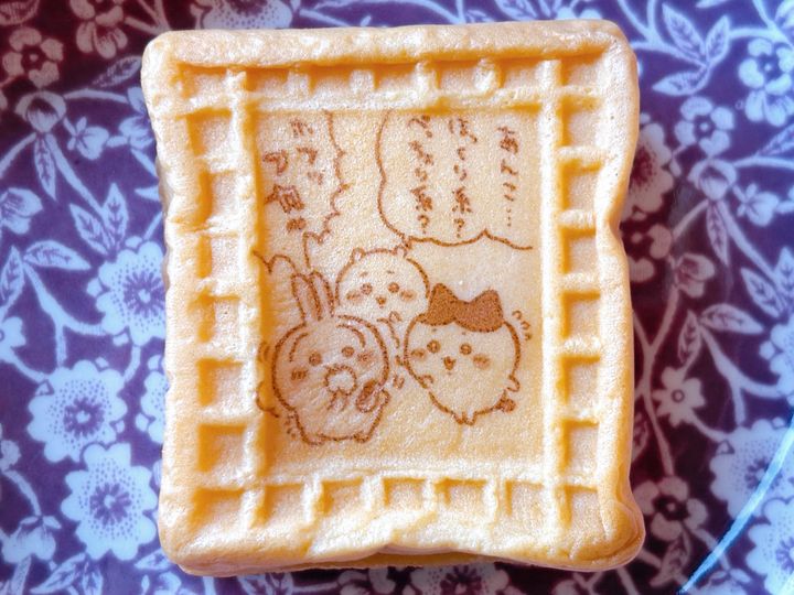 ワッフルの凹凸を活かして、ちいかわの食にまつわるエピソードが描かれています。その数10種類!今回は3種類選んで、実食レポを紹介します!