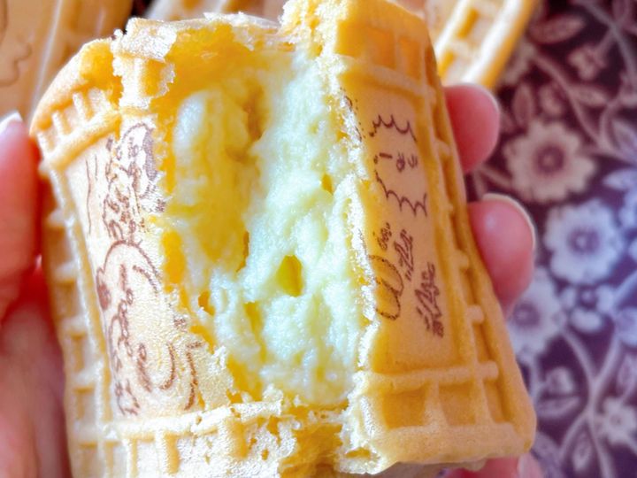 中には、カスタードのクリームが入っています。隅々までしっかりクリームが入っているのは嬉しいポイントですね。甘すぎないので子どものおやつにピッタリ!モチモチ食感でやみつきになります。あっという間に食べてしまいました。