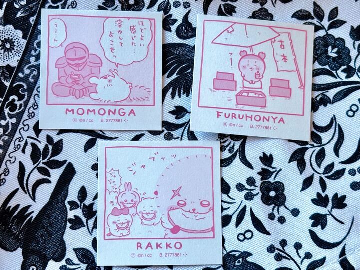 「ちいかわ わっふれーむ」には、全8種類あるオリジナルシールがランダムに各1枚入っています。どのキャラクターが入っているのか気になりますよね…。