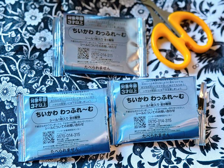 ちいかわとハチワレ、うさぎの表情がなんとも可愛いパッケージですね!全8種類のシール、各1枚入っているのも楽しみです。