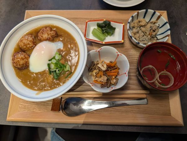 一緒に入った友人が頼んだのは「和風鶏カレー丼と焼つくね定食」。こちらは1000円とさらにリーズナブル。