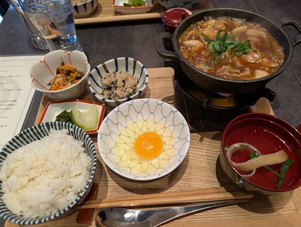 しばらくして運ばれてきた「すき焼き仕立ての親子鍋定食」