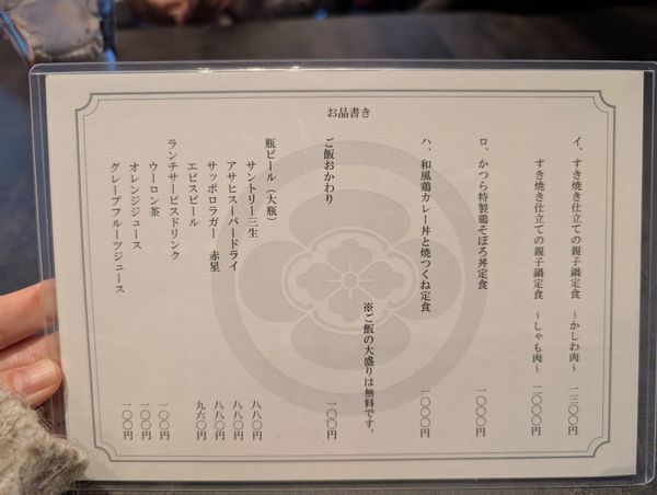 けど、この日は風も強く寒い日だったので、ポカポカのお料理が食べたい!ということで、すき焼き仕立ての親子鍋定食 ~かしわ肉~1,300円に決定!