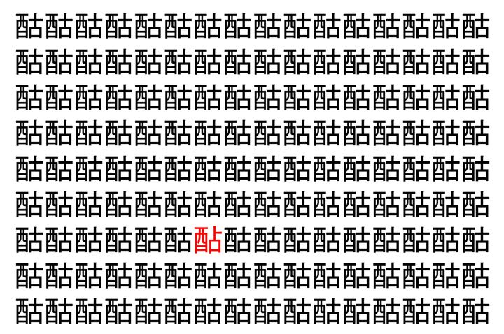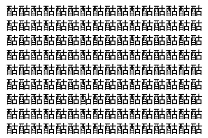 2. 【脳トレ】「酤」の中に紛れて1つ違う文字がある!?あなたは何秒で探し出せるかな??【違う文字を探せ!】