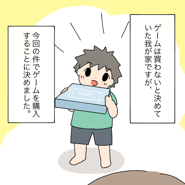友達に拒絶され、自分自身の行いについて反省したタクくん。その後、ゲームは買わないと決めていたものの、今回の件でゲームを購入することに決めたのでした。