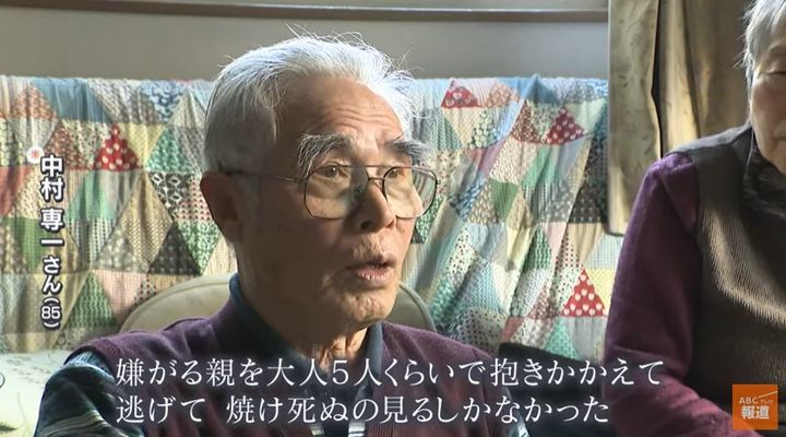 中村さんには忘れられない光景があります。押しつぶされた家に残された子ども。父親が救いだそうとしますがどうにもなりません。火災はそこまで迫り、燃えさかる炎が家を飲み込もうとしています。「それだけは親に見せないでおこうと、嫌がる父親を大人5人くらいで抱きかかえて逃げた」と中村さん。子どもは助かりませんでした。