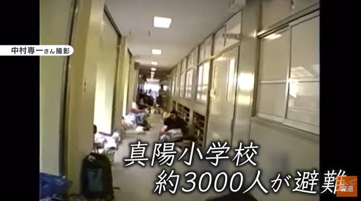 阪神・淡路大震災ではおよそ32万人が避難。真陽小学校には約3000人が身を寄せました。校内は、大勢の被災者が廊下や階段まであふれんばかり。地震直後は1人あたりのスペースが1畳に満たないことも。避難所は常にほこりっぽく、映像の中の中村さんは、カメラを回しながらしきりに咳をしています。