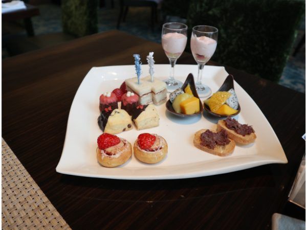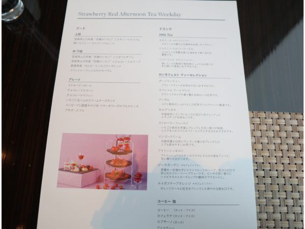 今回、私は平日に伺いました。 ただいま開催中のアフタヌーンティーのテーマは「ストロベリー レッド」。期間中は、「宮城県産いちご」と「チョコレート」が主役の赤いスイーツが楽しめます。
