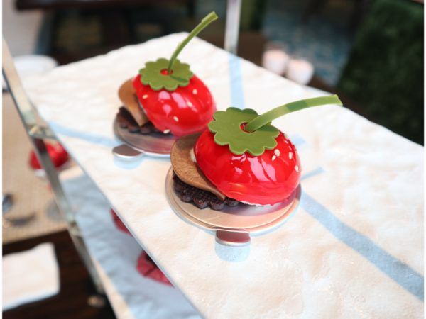 1番先に提供されたのは、上の写真の手前にあるいちごのノンアルコールシャンパン。目の前で注いでくれるので、スイーツが運ばれてくるまでの待ち時間も優雅な気分になります!