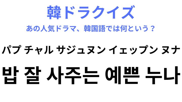 3. 【韓ドラ】「밥 잘 사주는 예쁜 누나(パプ チャル サジュヌン イェップン ヌナ)」を訳すと?