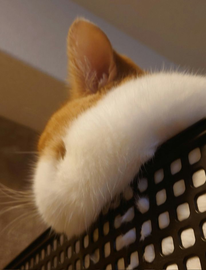 斜め後方からのお写真でしょうか。あまりのモチモチほっぺに横顔が見えませんね。はっきりとした見事な穴に、それが目かと一瞬見間違えてしまいます。おちゃまる君のおもちほっぺを、むぎゅむぎゅっとしてみたいですね…。
