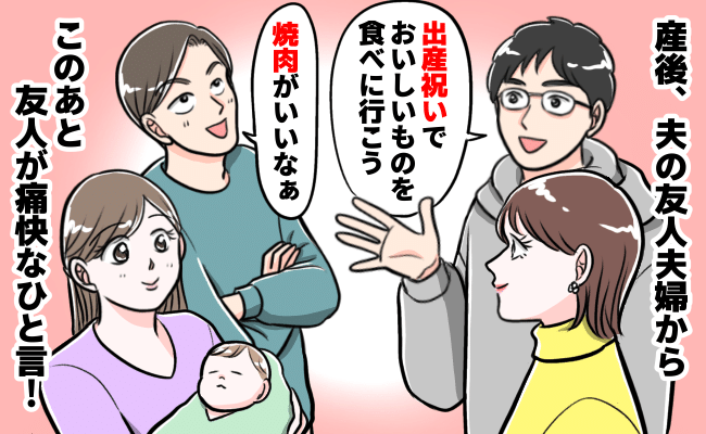 「焼肉はさぁ…」出産祝いのお店を決める夫を友人がスカッと成敗。神対応なひと言に感激!その言葉とは