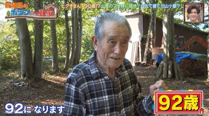ポツンと一軒家』(ABCテレビ)1月19日放送回の舞台は、新潟県の超山奥のブナ林にポツンと佇む1軒の小屋。この“ポツンと山小屋”は、建設業の経験がまったくない92歳男性が、美しいブナ林を眺めていたいという思いから、70歳の頃に自力で建てた別荘的存在だ。
