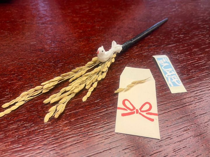 そうそう、松の内まで使用することができる、こちらの“稲穂の簪(かんざし)”。
