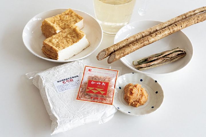 「三日のだんご」とは、もち米粉を練っただんごと、ずいきや根菜、厚揚げがたっぷりと入ったみそ汁のことです。出産後の女性に栄養をつけて、母乳の出がよくなるようにと、産後三日めに家族が作って、食べさせた伝統的な郷土の味です。