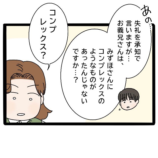 「失礼を承知で言いますが、お義兄さんは、みずほさんにコンプレックスのようなものがあったんじゃないですか?」という隆明さんの言葉に思わず「コンプレックス?」と繰り返したよっちゃん。