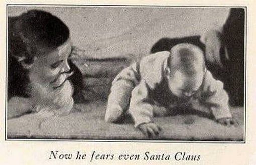 ジョンは最初にアルバート坊やに対して、白いネズミやウサギ、犬、サルといった動物を見せたり、ジョン本人が白髭のついたサンタクロースの不気味なお面を被ったり、燃えている新聞紙を見せたりしました。