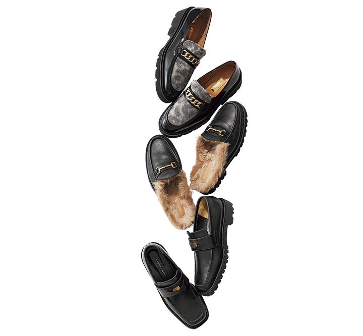 〈上から〉ローファー〔H5cm〕¥16,500(ル タロン グリーズ/ル タロン グリーズ ルミネ新宿店)スリッパローファー〔H3.5cm〕¥27,500(カミナンド/ビームス ハウス 丸の内)ローファー〔H3cm〕¥52,800(PIPPICHIC/ベイジュ)