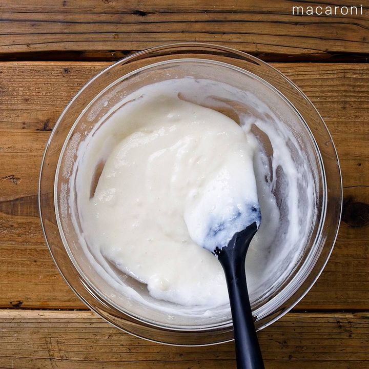 4: ホットケーキミックスを加えて粉気がなくなるまで混ぜます。