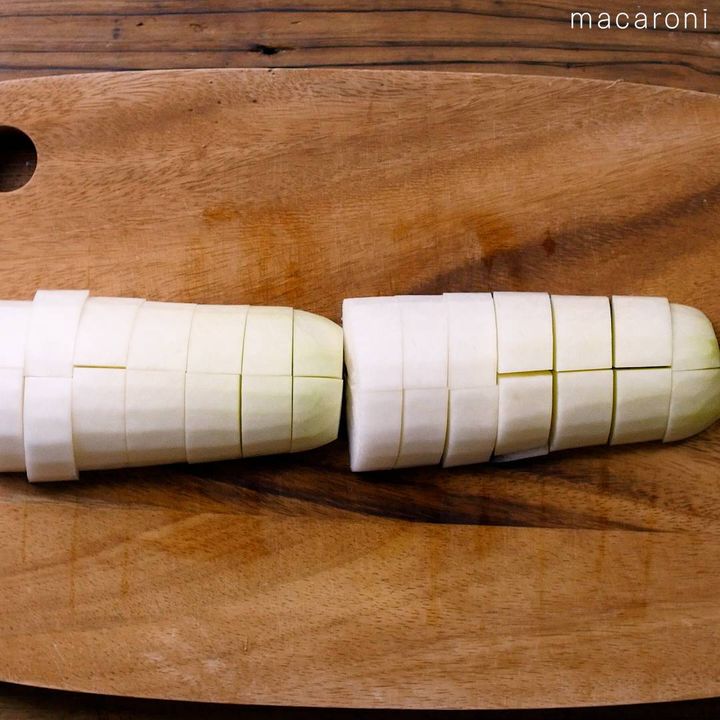 ※輪切りに切ってもよいですが、小さめのいちょう切りにすることでしっかりと味が染み込みます。