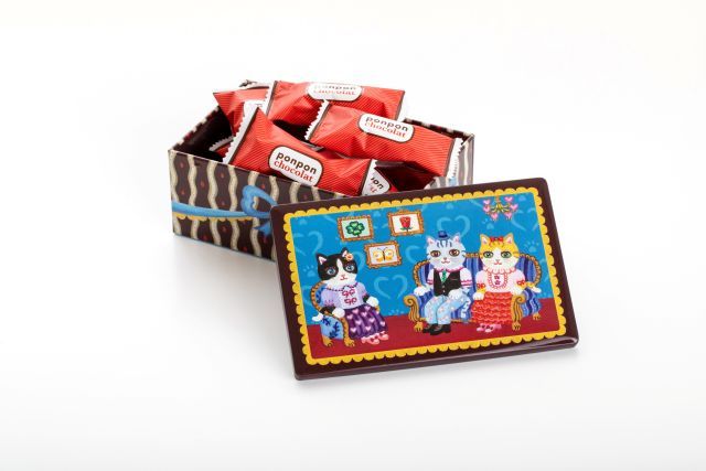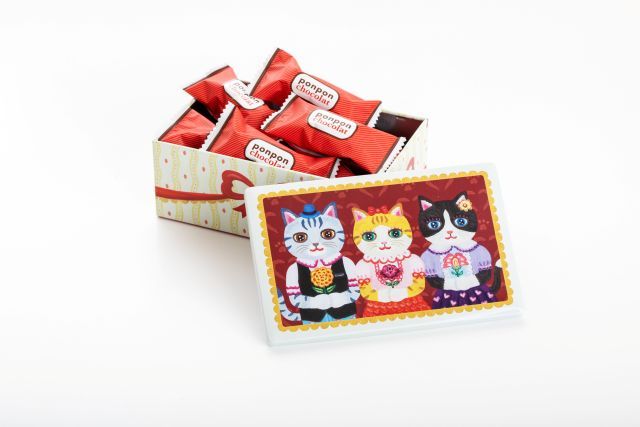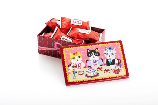 新感覚おこしブランド「pon pon Ja pon」からは、今年もアーティスト・とやちかこさんデザインの可愛らしい猫が描かれたバレンタインギフト「pon pon chocolat ネコ缶」が発売されます。