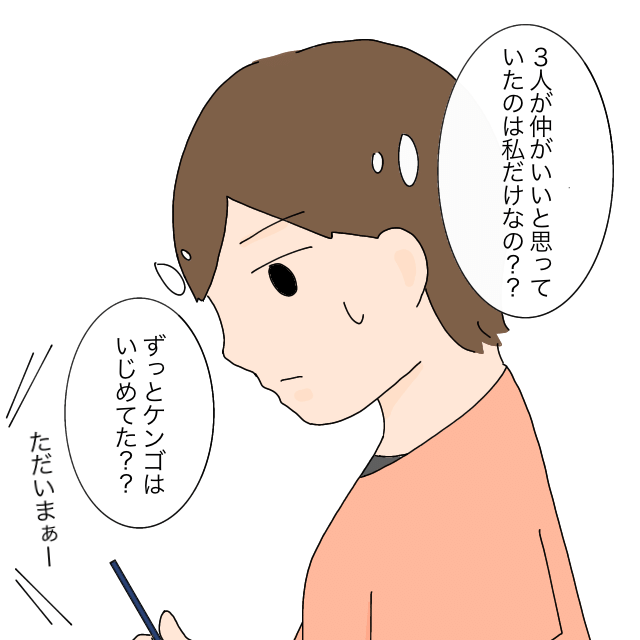 マモル君ママからのメッセージを読んだあかねさんは、「3人が仲がいいと思っていたのは私だけなの??ずっとケンゴはいじめてた??」と頭を悩ませていると、「ただいまぁー」ケンゴ君が帰って来ました。