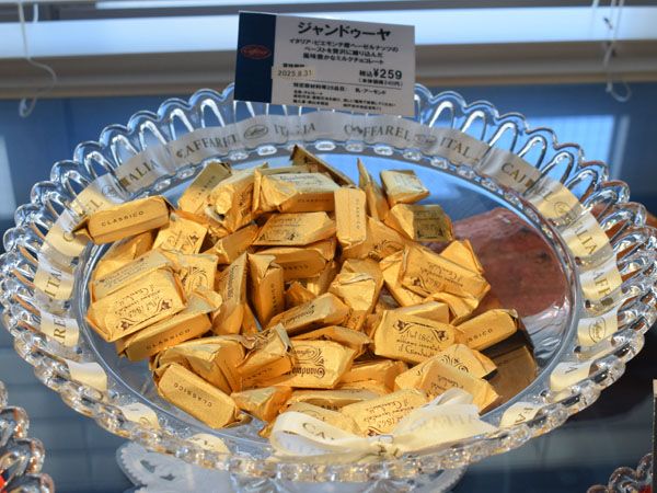ヘーゼルナッツの豊かな香りとなめらかな食感が特徴のチョコレート<ジャンドゥーヤ>は、1865年にイタリアのチョコレートブランド「カファレル」の職人さんが生み出しました。 チョコレートの多くは型に入れて固めるのに対して、<ジャンドゥーヤ>は昔ながらの押出成形という製法でつくっているため、とってもなめらかです。