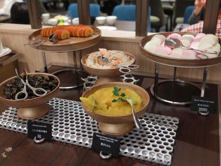 お正月のタイミングで宿泊したため、伊達巻きや紅白なます、栗きんとんなどおせちの定番料理も並んでいてより華やかな内容を楽しめました!(お正月限定メニューの提供は終了しています。)