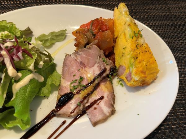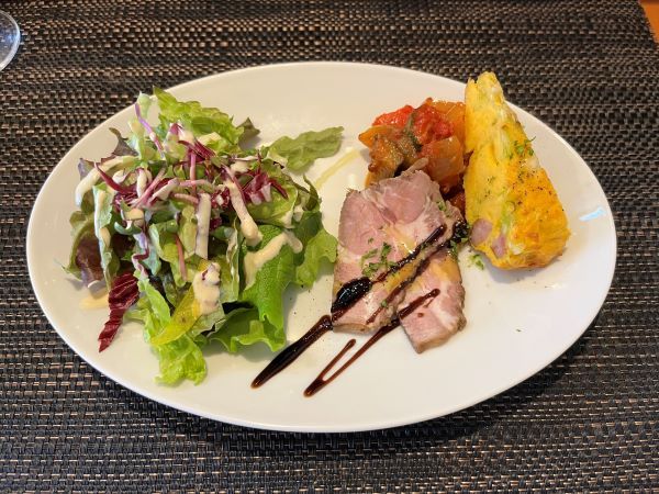 前菜がきました! 美味しそうですね~~! サラダに前菜盛り合わせにしてもらったのでイタリアンオムレツ、カポナータ、ハムが付いていました! どれもやさしい味付けで美味しくてすぐに食べてしまいました! 前菜の盛り合わせにしてよかったです。