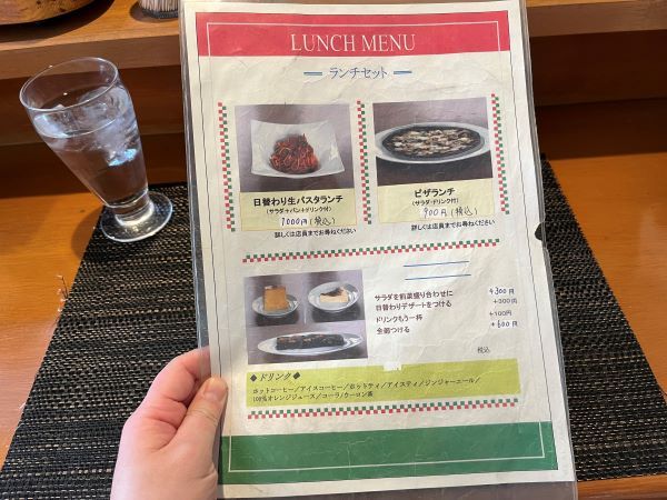 生パスタランチ(1000円)、ピザランチ(900円)、オムライスランチ(900円)、キッズプレート(600円)