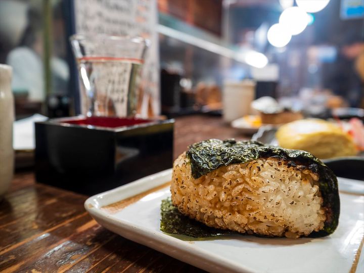 総本山となる「かにや」では、人気の塩サバや高菜、岩のりをはじめ、角煮まんじゅうで有名な長崎本舗とのコラボで生まれた角煮など、バラエティ豊かな具を30種類ほど用意。お酒で疲れた胃腸に優しい赤だしの味噌汁を一緒に頼むのが、現地のたしなみ方です。