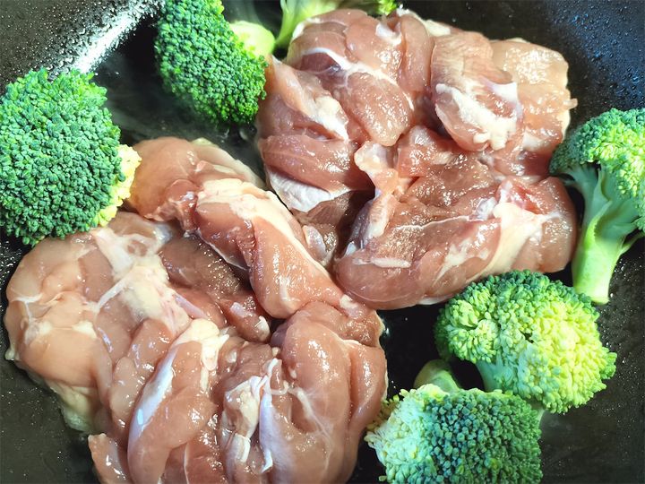 6. 鶏肉とブロッコリーに焼き目がついたら裏返し、両面焼けたら取り出しておきます。