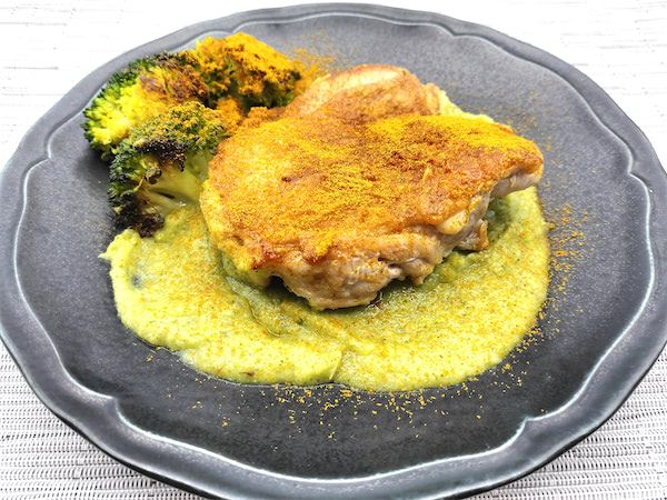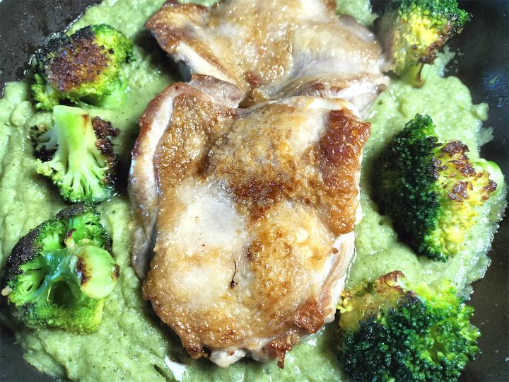 ブロッコリーの風味と味、そこに炒めた玉ねぎの甘さが加わったソースは濃厚なのに全くしつこくなく、鶏肉に乗せて一緒に食べると旨味がさらに加わります。出汁類を全く入れていないのに、ブロッコリーと鶏ももの旨味でこの味ができるのは驚きです。