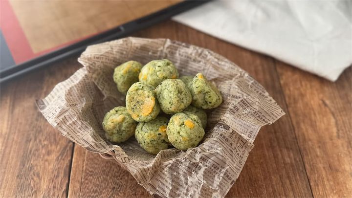 こんにちは!元パティシエで現在は2児の母をしている室崎さゆりです。今日は、「じゃがバター」「のり塩」「チーズ」という、ポテチの人気味みたいな材料を全部のせした一品「米粉のじゃがバタのり塩チーズボール」を紹介します!青のりとバター香る生地は、外側カリッと中はしっとりホクホク♪ チーズの塩味と合わさって、あぁこりゃ止まらん…子どもも大人も夢中になること間違いなしのおいしさですよ♪