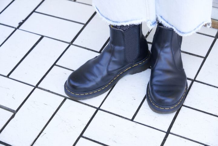 ドクターマーチンのサイドゴアブーツと 切りっぱなしデニムのバランスが絶妙