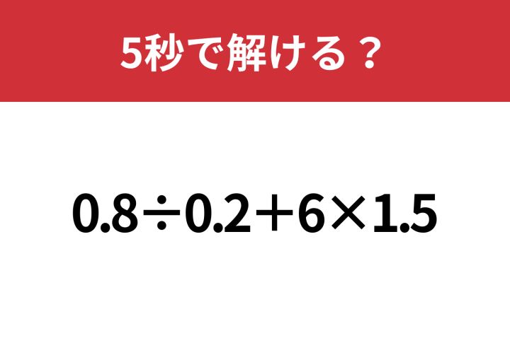 大人でも解けない人が多いかも!?「0.8÷0.2+6×1.5」5秒で解ける?