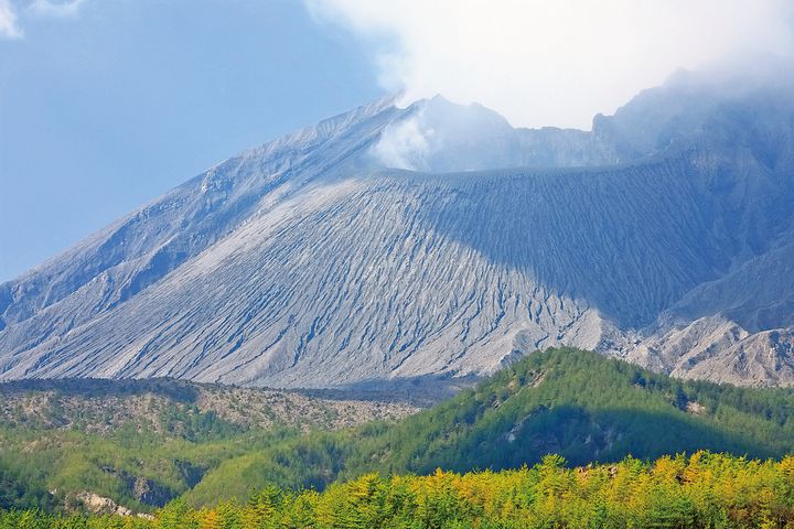 「桜島(さくらじま)」は、鹿児島市街地から桜島フェリーで約15分と、気軽に行くことができる鹿児島県のシンボル。超巨大噴火によって地面が陥没してできた錦江湾の南端に、約2万6000年前、子どもの火山「桜島」が誕生し噴火活動を続けながら成長しました。現在も毎日のように小規模な爆発を繰り返し、風向きによっては鹿児島市内でも降灰があります。ただ、溶岩流を伴う災害規模の大噴火には前兆現象があり、観測体制も整っているので過度に心配することはありません。