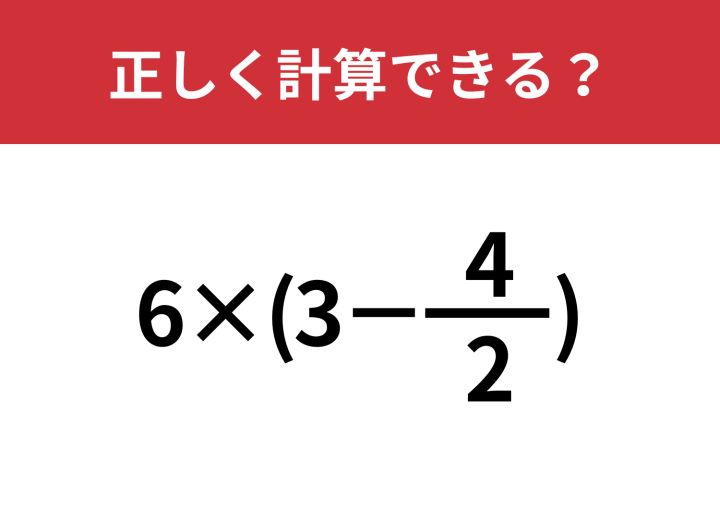 習ったはずなのに解けない!?「6×(3−4/2)」正しく計算できる?