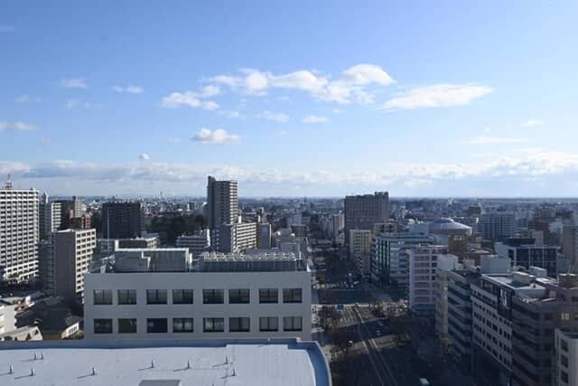 高層階なら広い窓から開放的な景色も楽しめます。客室の向きによっては水平線に仙台湾を望めるほか、夏は楽天モバイルパーク宮城から打ち上げられる花火もよく見えるそうです。